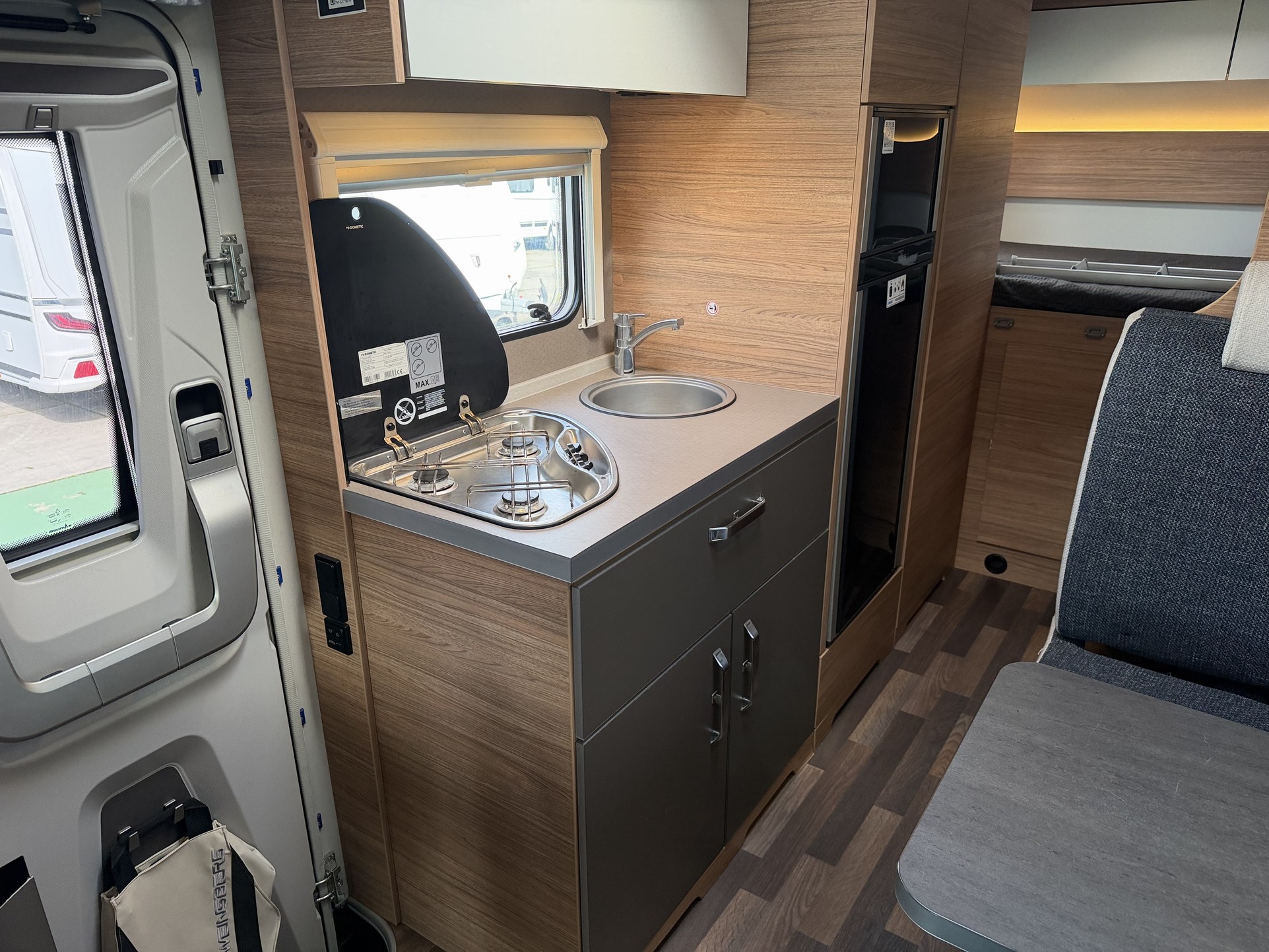 • 102564 - Opbouwdeur WEINSBERG PREMIUM met de volgende extra's t.o.v. WEINSBERG KOMFORT deur: meervoudig afsluitbaar, verdekt scharniersysteem, opening